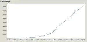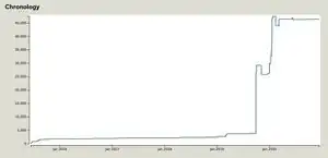 addr:floor=* у базі OSM. Порівняйте це набагато більш органічне зростання addr:floor=*, очевидно, що використовується у звичайному мапінгу, у порівнянні зі сплесками на попередньому графіку.