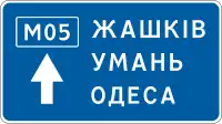 | Використовується для зазначення назви міста, до якого веде автомагістраль. |