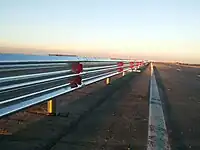 | Зазвичай металева рейка для утримання транспортних засобів у межах проїжджої частини та запобігання зіткненням. |