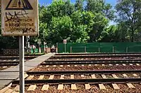 | Позначає місце, де пішоходи можуть переходити залізничні колії. |