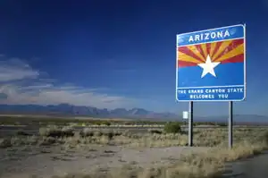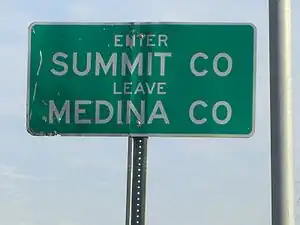 Welcome sign at the border of Meridian Charter Township, Ingham County, Michigan. Note that townships and municipalities sometimes place welcome signs at the entrance to business districts rather than their borders.
