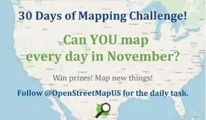 OpenStreetMap US challenges you to 30 days of mapping throughout November. Follow X (Twitter) @OpenStreetMapUS to get a new task each day.