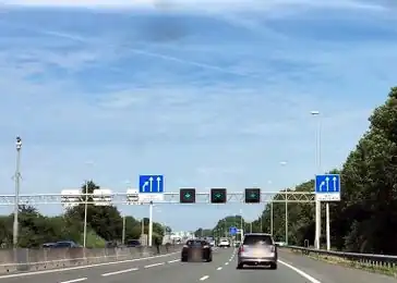 There is a peak-hour lane for the off-ramp on the right, replacing the hard shoulder.