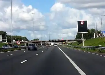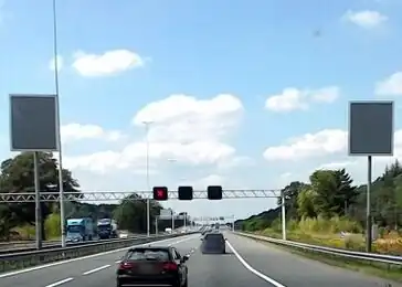 This road segment has a hard shoulder on the right next to the peak-hour lane on the right. |