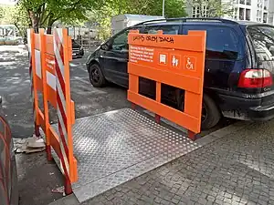 Transport- und Übergangsrampen, um Querungen für die Müllentsorgung, Eltern mit Kinderwagen oder Rollstuhlfahrer frei zu halten. Werden in Berlin durch die Berliner Stadtreinigung (BSR) aufgestellt.