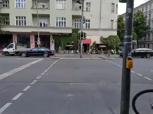 highway=crossing+crossing=traffic_signals(sowie bei Bedarfcrossing:island=no, da dieser Punkt keine Mittelinsel repräsentiert, sondern die Mittelinsel zwischen den beiden crossing-Nodes liegt und durchcrossing:island=yesan der Wegelinie erkennbar wird. Prinzipiell wäre dieser Tag nicht notwendig, wird aber durch StreetComplete abgefragt und landet daher vielerorts ohnehin früher oder später an diesem Punkt - häufig falsch beantwortet.) - Bordsteinkanten: