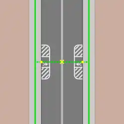 Für Querungen, die zwar nicht im Bereich des fließenden Verkehrs (in der Straßenmitte), aber am Fahrbahnrand mit Markierungen versehen sind. Werte für crossing:buffer_marking=*: both für Markierungen an beiden Straßenseiten, left/right für einseitige Markierungen (je nach Linienrichtung der Straße, vgl. oben: Gehwegvorstreckungen), yes wenn nicht weiter bestimmt/erkennbar.