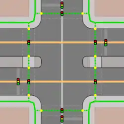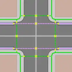 T-Kreuzung mit separat gemappten Gehwegen![]() Die |