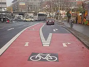 - Hochbordradweg (Radwege, die von der Fahrbahn durch einen Bordstein getrennt und häufig im Bereich des Gehwegs verlaufen):