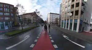 - Protected Bike Lane (Geschützter Radfahrstreifen, durch Barrieren wie Poller geschützte Radwege):