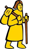symbol=black pilgrim on white red flag Description of the signpost