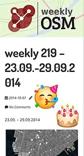 weeklyOSM is the sister project of the German OSM blog (also well known as Wochennotiz). The infrastructure of weeklyOSM was created within the Comenius project "My community and my history in OpenStreetMap" by an international team from five countries and is being consigned, little by little, into the hands of the community.