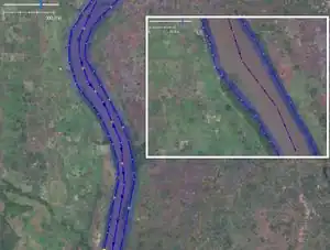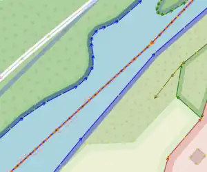 Les grandes rivières peuvent être cartographiées en tant que relations (pour en savoir plus, voir Relation:waterway.