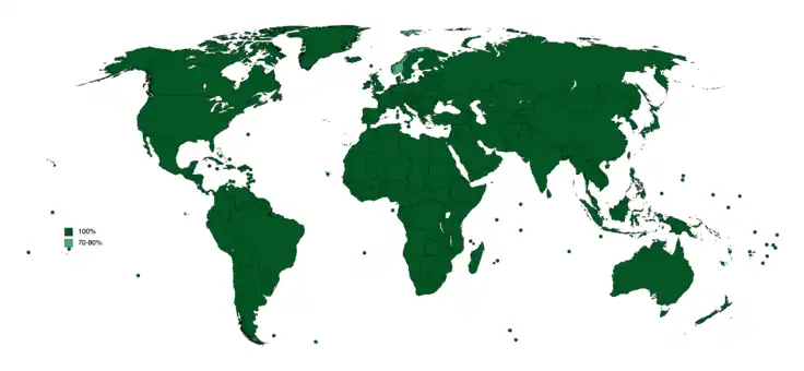 14 June 2022: Color-coded world map which categorizes countries and autonomous territories based on the percentage the modern water=river tag accounts for all of the country's river area tags, including waterway=riverbank. Countries with a 100% rating use water=river exclusively, while those with a 0% rating use waterway=riverbank exclusively.