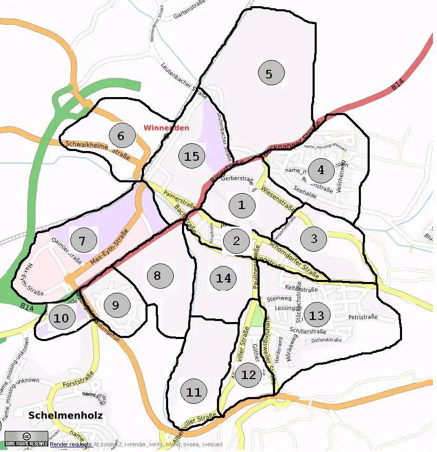 map of the suburbs of Winnenden