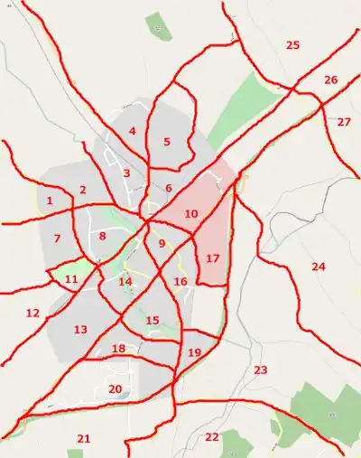 The above diagram was created in January 2010. If Attendees want to reserve an area add their name to the list below the image. The numbers have been assigned fairly randomly and don't represent any sort of priority, except that the numbers covering the existing Witham landuse areas are most likely to have more roads to be added than those surrounding the town.
