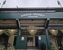 "Rags" Scheuermann Field at Kirsch-Rooney Stadium is a 1,000-seat baseball park in New Orleans, Louisiana.[2] It is the home stadium for the Delgado Community College Dolphins baseball team that competes in the National Junior College Athletic Association.[3] The stadium is also home to Louisiana High School Athletic Association baseball and American Legion Baseball.[4]