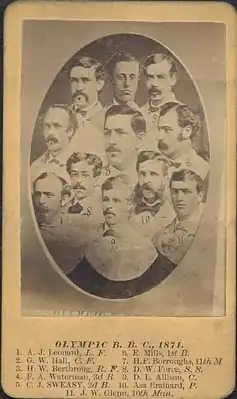 The Washington Olympics played their first season in 1871 as a charter member of the National Association of Professional Base Ball Players. They finished fourth in the league with a record of 15–15.