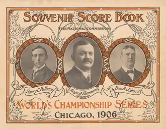 ![]() A program featuring league presidents Ban Johnson and Harry Pulliam, and National Baseball Commission President August Herrmann | ||||||||||