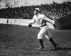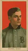 First baseman Claude Rossman played for the Tigers from 1907 to 1909. In 1907, Rossman hit .277 and had 69 RBIs—third most on the team after Cobb and Crawford. Rossman had a peculiar emotional quirk where he sometimes froze and could not throw the ball when he became excited. Runners would lead off first to draw a throw from the pitcher, then run to second when Rossman froze.[8] He was 28 when he played his last major league game and died at age 46 in a New York hospital for the insane where he had been a patient for several years.
