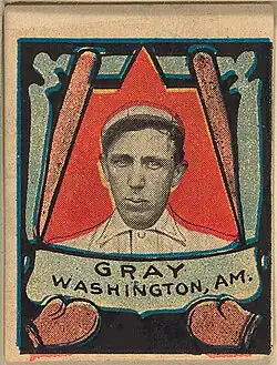 Pitcher Dolly Gray was the dominant pitcher in the PCL in 1906. He appeared in 53 games and led the league with 32 wins and a 1.71 earned run average (ERA).[1][4] He ranked second in the league with 216 strikeouts.[4] Gray had five 20-win season for the Angels between 1903 and 1908. He went on to play for the Washington Senators from 1909 to 1911.