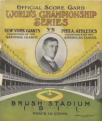 - ^ "1911 World Series Game 1 – Philadelphia Athletics vs. New York Giants". Retrosheet. Retrieved September 13, 2009.