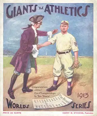 - ^ "1913 World Series Game 5 – Philadelphia Athletics vs. New York Giants". Retrosheet. Retrieved September 13, 2009.