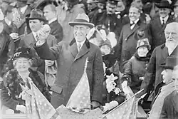 ![]() U.S. President Woodrow Wilson throws out the ceremonial first pitch, first for a president in a World Series. | ||||||||||