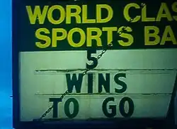 The Cubs held a 3–0 lead going into the top of the eighth inning in Game 6 and, after Mike Mordecai hit a high pop fly to left field for the first out of the inning, had only two outs left in the inning—leaving the team a mere 5 outs away from their first World Series berth since 1945.