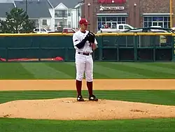The Razorbacks began the 2010 campaign on February 19 with a 10–2 victory over the Ball State Cardinals. Hogs starter Mike Bolsinger earned the win, and Andy Wilkins provided two hits, 2 RBI, and a solo home run. Every Razorback starting player recorded at least a base hit in the contest.[3] It was a different story in game two, however, as Ball State took a lead in the first inning and did not relinquish it. Geoffrey Davenport would continue after the shaky start to pitch effectively for four innings, including striking out the side in the fourth. The Razorbacks left twelve runners on base, and committed four defensive errors.[4] Game three was initially delayed fifteen minutes due to rain, but once the game started, Brett Eibner and Drew Smyly pitched well. Designated hitter Monk Kreder, a junior college transfer native to Keller, Texas, collected three hits. Six different Razorbacks scored in the 9–3 victory.[5]