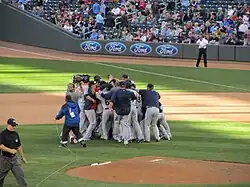 The Indians started July by losing 5 of 7 to division rivals Kansas City and Detroit, before finishing the first half on a strong note, taking five of six from Toronto and Kansas City. Late July was highlighted by an eight-game winning streak, which included sweeps of the then AL West leading Texas Rangers and the Chicago White Sox.