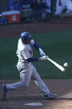On October 31, 2013, several Dodgers automatically became free agents the morning after the 2013 World Series ended. They included pitchers J. P. Howell, Carlos Mármol, Ricky Nolasco, Edinson Vólquez, and Brian Wilson, third baseman Juan Uribe and utility players Jerry Hairston Jr., Nick Punto, Skip Schumaker, and Michael Young.[16] The same day, the Dodgers declined their 2014 options on second baseman Mark Ellis and pitcher Chris Capuano, making them both free agents as well.[17] Utility player Elián Herrera was claimed off waivers by the Milwaukee Brewers on November 5.[18] On November 20, relief pitcher Shawn Tolleson was claimed off waivers by the Texas Rangers.[19] On December 3, the Dodgers chose not to tender a contract to arbitration-eligible pitcher Ronald Belisario, making him a free agent.[20]