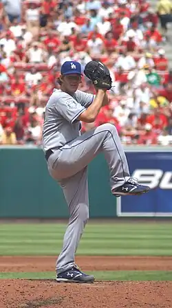 Back on the road against the Diamondbacks, Puig and Van Slyke each homered and Greinke picked up his league leading seventh run in the 7–0 win.[90] On May 17, Kershaw had the shortest start of his career, lasting only 1+2⁄3 innings and allowing seven runs in what became an 18–7 loss.[91] Poor defense contributed to a 5–3 loss in the series finale.[92] The team next traveled to Citi Field for a series against the New York Mets. They won the opener 9–4 as Adrián González had three hits, including a tie-breaking home run.[93] He homered again the next day, as did Puig and Hanley Ramírez as Hyun-jin Ryu came off the disabled list to beat the Mets 4–3.[94] However they lost the series finale, 5–3.[95] Kershaw rebounded to pitch six shutout innings, sandwiched around a 45-minute rain delay, as the Dodgers won the opener of a series from the Philadelphia Phillies, 2–0, at Citizens Bank Park.[96] More shoddy defense led to a 5–3 defeat the next day.[97] The Dodgers ended the road trip with a 6–0 win over the Phillies as Josh Beckett pitched his first career no hitter, and the first by a Dodger pitcher since Hideo Nomo in 1996.[98]