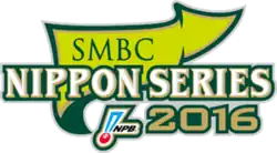 The 2016 Japan Series was the 67th edition of Nippon Professional Baseball's postseason championship series for the 2016 season. The Hiroshima Toyo Carp, champions of the Central League, played the Hokkaido Nippon-Ham Fighters, champions of the Pacific League,[1][2] in a best-of-seven series beginning on October 22. The Japan Series was sponsored by the Sumitomo Mitsui Banking Corporation (SMBC) and was officially known as the SMBC Nippon Series 2016.