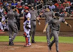 Facing the Los Angeles Dodgers on September 4, Diamondbacks outfielder J. D. Martinez became the 18th player in MLB history to hit four home runs in a game. This performance meant that the Diamondbacks became the first team ever to have had a 20-strikeout game in nine innings (Randy Johnson, 2001), a perfect game (Johnson again, 2004) and a four-homer game (Martinez).[3]