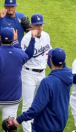 On December 11, the Dodgers traded pitcher Victor González and infielder Jorbit Vivas to the New York Yankees for minor league infielder Trey Sweeney.[15] Pitcher Bryan Hudson was designated for assignment on December 27 and removed from the roster.[16] On January 11, the Dodgers traded infielder Michael Busch and relief pitcher Yency Almonte to the Chicago Cubs in exchange for two minor league players, Jackson Ferris and Zyhir Hope.[17] On February 5, the Dodgers traded pitcher Caleb Ferguson to the New York Yankees in exchange for pitcher Matt Gage and minor leaguer Christian Zazueta.[18]