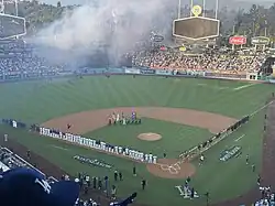 This season the Dodgers played exhibition games in South Korea against the Kiwoom Heroes and the Korea national baseball team on March 17 and 18 before opening the regular season with two games against the San Diego Padres at Gocheok Sky Dome as part of MLB World Tour. They then played three exhibition games in the Freeway Series against the Angels before the rest of the regular season commenced.[42]