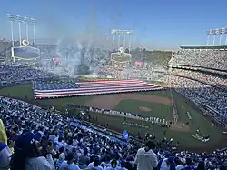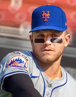 The Mets beat the Milwaukee Brewers in the National League Wild Card Series two games to one to advance to the National League Division Series for the first time since 2015.[8] They beat their division rival Philadelphia Phillies three games to one to advance them to the National League Championship Series, becoming the 8th team in MLB history to make the LCS after being 11 or more games below .500.[9] However, the Mets were defeated four games to two by the eventual World Series champion Los Angeles Dodgers in the NLCS, ending their historic and magical playoff run.[10] Despite the loss, one highlight came in Game 5 when the Mets became the first team since the 2002 Angels to avoid striking out in a postseason game.[11]