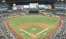 On September 28, Judge hit his 61st home run off Tim Mayza of the Toronto Blue Jays, tying Roger Maris for the most home runs in a single season in American League history.[158] In the second game of a doubleheader (and the Yankees' second-to-last regular season game) against the Texas Rangers at Globe Life Field on October 4, Judge hit his 62nd home run off Jesús Tinoco, setting the new single-season American League home run record.[159][160][161] Judge was selected as the AL Player of the Week for the week of September 29–October 5.[162] Judge claimed his third AL Player of the Month Award in September 2023.[146] He batted .417/.565/.869 for September.[144]