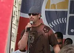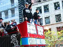 The White Sox won the AL Central title, advancing to the playoffs for the first time in Rowand's career.[34] In the first game of the AL Division Series (ALDS) against the Boston Red Sox, he slammed into the wall chasing after a ball even though the White Sox were up by 14 runs.[35] He batted .400 with two RBI in the ALDS, which Chicago swept in three games.[2] In the AL Championship Series (ALCS), he batted .167 with three hits (all doubles), three runs scored, and one RBI as the White Sox defeated the Los Angeles Angels in five games.[36] Against the Houston Astros in the World Series, he batted .294. Though he had no RBI, he scored two runs and had five hits as the White Sox swept the Astros, earning their first World Series championship since 1917.[36][37]