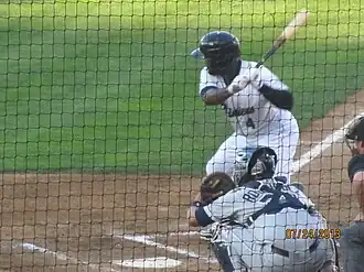 After being signed in 2005, was assigned to play in the Dominican Summer League (DSL) for the DSL Yankees.[3] Almonte started his professional career as a second baseman, but was transitioned to outfield due to his speed and the organization's need for young outfielders.[4] In 63 DSL games, he batted .254 with 26 runs batted in (RBIs), eight home runs, and a .409 on-base percentage (OBP), .450 slugging percentage (SLG), and a .859 on-base plus slugging (OPS). The following season in 2007, Almonte was promoted to the Yankees' Gulf Coast League team, where he excelled with a .288 batting average in 49 games. Over the next two seasons (2008-2009), Almonte played for the Charleston RiverDogs of the Single–A South Atlantic League. In 2009, Almonte batted .288 with 56 RBIs in 115 games. In 2010, shortly after being promoted to the Tampa Yankees of the High–A Florida State League, played only 15 games before undergoing surgery to repair a torn right labrum. He came back healthy in 2011 for Tampa, and reached a 34-game hit streak midseason. Almonte's performance earned him a promotion to the Trenton Thunder of the Double-A Eastern League. In 78 games, he batted .276 with four home runs and 25 RBIs.[5]
