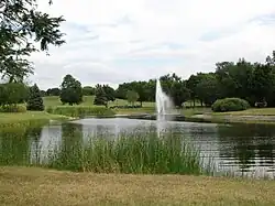 The park is 105,000 m2 (1,130,000 sq ft) large.[1] There are paths for pedestrians and cyclists, a playground, a bowling green, a community garden, a skate park and an indoor skating rink. One of the features of the park is its hill, and pond. There is also a welcome centre near the park's entrance.[1]