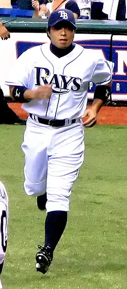 Akinori Iwamura (岩村 明憲, Iwamura Akinori; born February 9, 1979) is a former Japanese baseball infielder, who currently is a manager for the Fukushima Red Hopes in Japan's Baseball Challenge League. He made his Major League debut with the Tampa Bay Devil Rays in 2007.