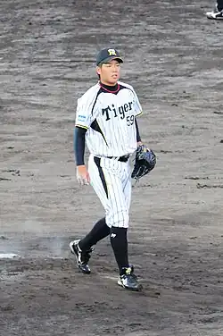 Iwamoto continued pitching in ni-gun games, and recorded his first shutout game against the Orix Buffaloes in August.[3] His success in ni-gun paid off, and he finally made it to the active roster on September 8.[4] The following day, he debuted as a starter against the Chunichi Dragons in the Nagoya Dome, where he pitched six shutout innings (and allowed two hits) and recorded his first pro victory.[5] With this, Iwamoto became the 13th Hanshin pitcher to record a win on his first outing,[6] and just the 4th pitcher out of high school to do so, the last one being Osamu Nishimura in 1951.[7] He was temporarily demoted to ni-gun to make way for additional players in the active roster, but on his 2nd outing against the Tokyo Yakult Swallows, he again recorded another win, making him the 3rd pitcher in franchise history to do so since Yukio Nishimura in 1937.[8] On October 5, he would have been the first ever Hanshin pitcher to win all of his first three career starts,[9] but due to a fielding error by Ryota Arai that resulted to a run and the lack of run support from the lineup, he earned his first career loss despite surrendering only three hits and no runs in six innings of work.[10]