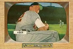 Aber graduated from West Technical High School and was signed as by the Indians at age 19 in 1946.[1] He made his major league debut on September 15, 1950, pitching a complete-game victory, allowing two runs.[1] He did not play another game in the big leagues until 1953, spending the 1951 and 1952 seasons performing military service during the Korean War. He appeared in six games for the Indians in 1953, winning one and losing one, before being traded on June 15 to the Tigers with Steve Gromek, Ray Boone and Dick Weik for Art Houtteman, Owen Friend, Bill Wight, and Joe Ginsberg.[1] Aber spent the next five years with the Tigers, where he compiled a 22–24 record.[1] His best statistical season was 1955, in which Aber appeared in 39 games and won six, lost three, and had an earned run average of 3.38.[1] He was then waived by the Tigers, and was picked up by the Kansas City Athletics, for whom he pitched in three games, his final appearance coming on September 11, 1957.[1]