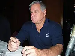 Early in his career with the Cardinals, Hrabosky enhanced his menacing appearance with long hair and a horseshoe moustache. When Vern Rapp became Cardinals manager in 1977, he imposed a grooming code on the players; Hrabosky cut his hair and shaved the moustache despite his vehement opposition. He explained, "Relief pitching is 75 per cent mental. How am I going to scare hell out of the hitters with my new image? How am I going to convince them I'm a dangerous madman if I look like a golf-pro? I've never been blessed with great ability. My mystique was what made me successful."[5] The enmity between Hrabosky and Rapp persisted throughout the season and included the former being suspended on May 21 for what Cardinals management stated as "rank insubordination."[6][7]