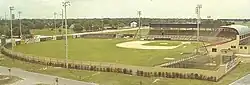 Construction on Al López Field was not quite complete on October 6, 1954, when it was officially dedicated as part of "Al López Day" in Tampa.[3] It was, however, ready for spring training in March 1954, when the Chicago White Sox used the place as a training base while playing exhibition games at Plant Field.[4] From 1957-1959, after the White Sox went north for the beginning of the regular season, their new Florida State League Class-A team, the Tampa Tarpons, took the field.[5] Al López became the White Sox manager in 1957, putting him in the unusual position of managing in his hometown in a stadium that bore his name. During one ballgame, Lopez got into an argument with umpire John Stevens and was ejected. As Lopez said later, "The umpire threw me out of my own ballpark!"[6]