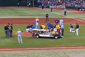 - ^ Marc Topkin (June 15, 2013). "Rays' Cobb hit in head by line drive, taken off on stretcher". Tampa Bay Times. Retrieved June 15, 2013.