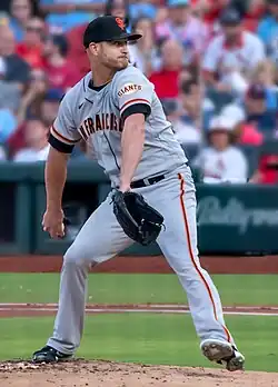 In 2022 with the Giants, he was 7–8 with a 3.73 ERA in 23 starts, as in 149.2 innings he struck out 151 batters (a career high).[51] He was in the top 4% in "lowest barrel-rate against," among MLB pitchers.[37] His 3.51 strikeouts/walk ratio was the best of his career, and he used his splitter 42.5% of the time which was the highest splitter usage among starters in MLB.[52] On defense he led all NL pitchers in double plays turned, with four.[51]