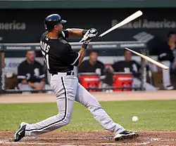 After being claimed off of waivers by the Chicago White Sox on August 10, Ríos batted .199, with three home runs, 9 RBI and a .296 on-base percentage in 146 at bats over 41 games.[3] Rios batted .284, with 21 home runs, 88 RBI and a .334 on-base percentage for the White Sox in 2010.[3] After a disappointing 2011 season in which he batted a career-low .227, Ríos rebounded to have one of his finest years in 2012, setting career highs with a .304 average, 25 home runs and 91 RBIs.